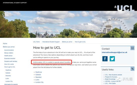 UCL大学木有官方接机服务UCLis unable to operate airport transfers(图片来自UCL大学官网)