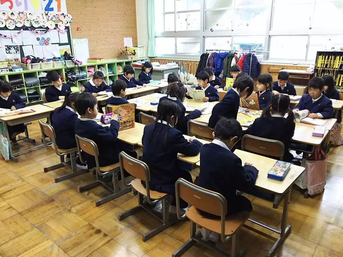 上小学后,日本所有公立小学每天上午也都安排“早读”时间,每周也有固定的图书室读书活动,同样,也有一个读书记录,同样,在每学期末时,汇总每个人的读书记录,比比看谁读的书最多。