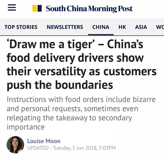 香港《南华早报》近日也发表了一篇文章,盘点外卖小哥收到的各种奇葩要求。