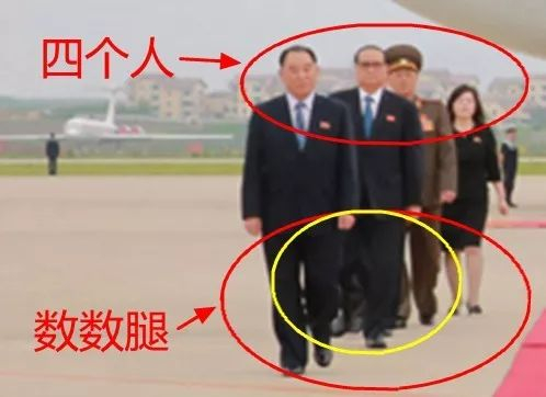 照片显示,金帅的主要随行人员金英哲、李洙墉、努光铁、崔善姬同机返抵平壤。但这张照片有些地方令我费解,即四个人的身子+疑似五个人的腿,在李洙墉和努光铁之间似乎还有一个人。按照代表团名单,李洙墉与努光铁之间应是外务相李容浩;从身材来看,李洙墉较李容浩高大。那么,是李容浩被李洙墉挡住了吗?从摄影角度来说,这当然有可能。但让我疑惑的是,李容浩会被挡得连脑袋都露不出来吗?