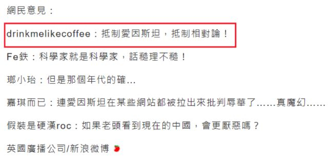 所以,他在评论爱因斯坦这个事时留下那句“抵制爱因斯坦、抵制相对论”的评论,看起来更像是他在“预设靶子”黑“小粉红”。可这家港媒却反而把他挑了出来当成了“内地网民”都是“无脑愤青”的典型,这也算十分“魔幻”了。