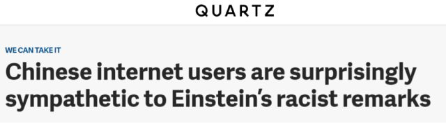 ▲图为美国的石英网对于中国网民冷静看待爱因斯坦言论的报道