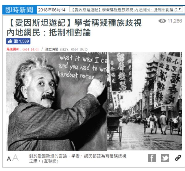奇怪的是,当中国和外国网友都认为不该对爱因斯坦在那个时代对于中国乃至亚洲其他国家的歧视性认知“上纲上线”的时候,咱们中国香港的一家媒体却在关于此事的报道中打出了一个蓄意“丑化”内地网友的标题。