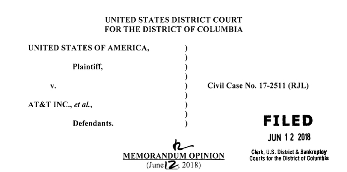 但是在美国本土却发生了几件不能忽视的事情。12日,美国华府地区联邦法官理查德·里昂(Richard Leon)批准了时代华纳公司(Time Warner)和美国电话电报公司(AT&T)的合并案,确切地说,是否决了美国司法部对该合并案的反垄断诉讼。该案标的高达850亿美元。