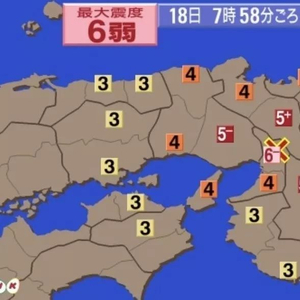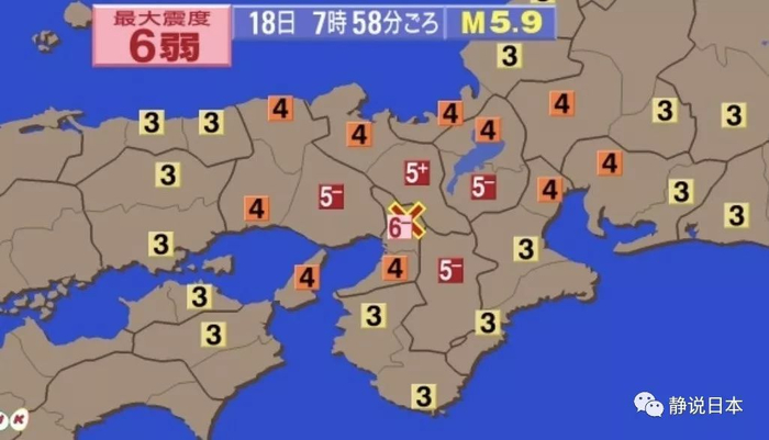 今天早晨7时58分,大阪府北部地区突然发生了一场6.1级的大地震,刚好是上班上学的高峰期,这一次地震长达30秒的剧烈摇晃,给大阪府、京都府、奈良县、滋贺县等地区带来了强烈的震动,结果是,奔驰中的新干线列车自动紧急停车,没有出轨。城际列车和地铁全部停驶,关西国际机场和大阪机场临时关闭跑道,大批乘客滞留车中和车站。