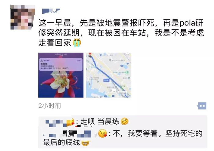 “突然就开始摇晃起来,摇了三秒后手机警报大叫被吓一跳,啊。。。太可怕了!”