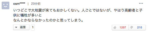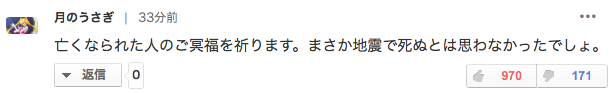 “希望死去的人安息。。。但是想必谁都不会觉得自己会因地震而死吧。”