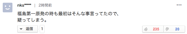 “福岛那次最初也说没事儿,很怀疑(菅义伟)这样的发言。”