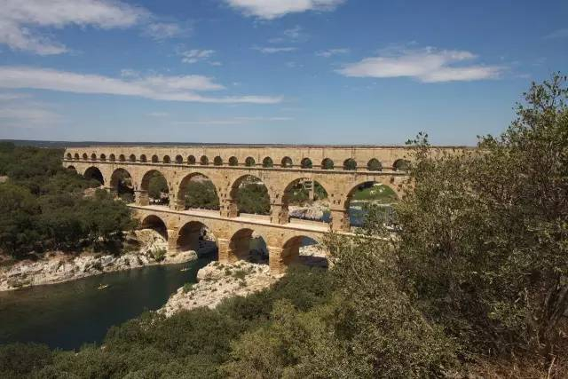 法国南部还有一处不容错过的一处旅游景点,让我们翻到5欧纸币的背面,它就是嘉德水道桥。也译作加尔桥,位于法国嘉德省,坐落在尼姆(Nimes)城东北郊外的加尔河上,它是世界上现存最大的古罗马引水渠,是如今世界上最高的高架引水桥。1985年,加尔桥被列为联合国科教文组织的文化遗产。