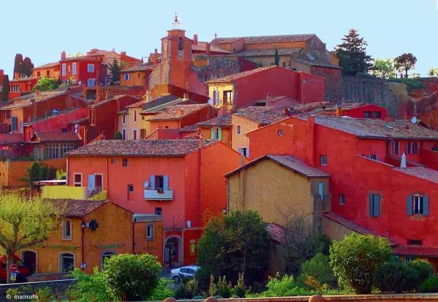除了本地出土的红色,城中居民更是给自己的房子穿上各式的颜色,使这座小镇在不同的颜色中跳跃。窗台下的花盆,拐角的鲜花,共同渲染除了一幅自然的水彩画册。