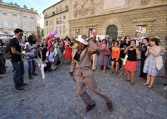 戏剧节时,来自世界各地的戏剧爱好者在街头演奏、表演。