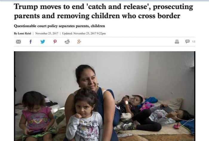 早在去年11月,Kriel已经发表过一篇名为“Trump moves to end ‘catch and release’, prosecuting parents andremoving children who cross border。(特朗普总统更加彻底的移民政策:起诉跨境的移民父母,带走他们的孩子)”的报道。而全国性的媒体机构开始密集关注特朗普的“零容忍”政策,还是在今年5月这一政策得到官方公示和大范围内推行之后的事。
