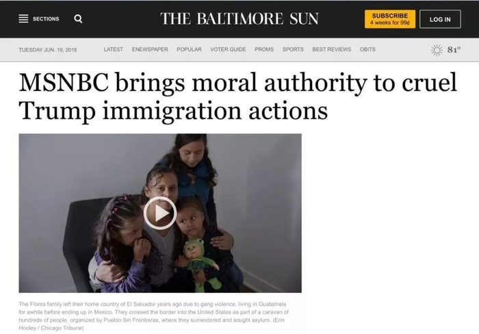 微软全国广播公司(MSNBC)的主持人Chris Hayes在事件发生的几周前就曾在节目中呼吁公众关注移民问题,这位主持人请了一些研究移民问题的专家,为解读政策做过一期专题节目。《巴尔的摩太阳报》的媒体评论人David Zurawik称赞了MSNBC的这一做法:做新闻的同时,兼顾了道德良知。