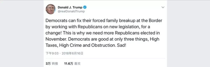 特朗普和他的政治喉舌耍了滑头,他们声称,发生这样的局面,民主党应该担负起责任。在特朗普的推文中,他是这样说的:“民主党倡导的残酷的立法决议才是导致移民家庭破碎分裂的最大推手。”