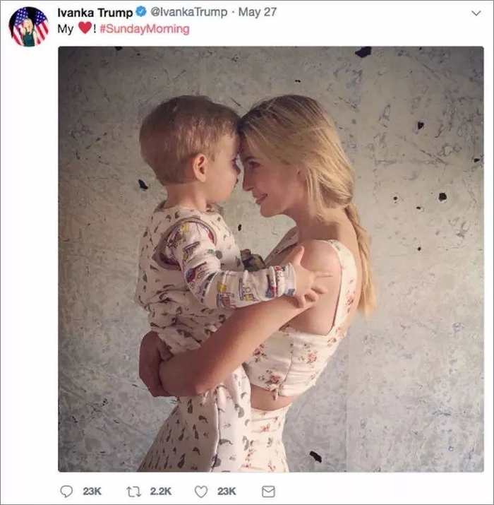 ▲ 今年5月,伊万卡在社交媒体上传了一张与小儿子西奥多的亲子照,谁知这次“晒娃”引发了网民的大加挞伐。网民们认为美国政府的强硬政策强迫非法入境者骨肉分离,而伊万卡却还有闲情逸致,“生活在梦幻中”,实在是“不识民间疾苦”。