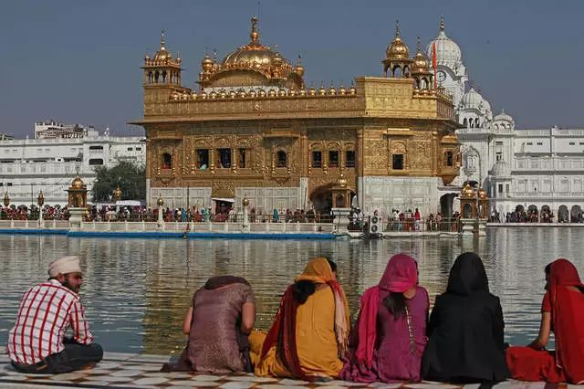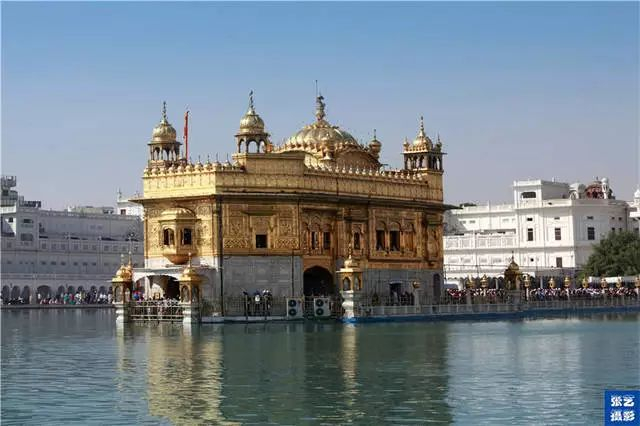 在印度北部的阿姆利则,有一个世界闻名的圣地,锡克“金庙”,被誉为是“锡克教圣冠上的宝石”,它是印度锡克教最大的寺庙,坐落在一个叫做“神池”的水池中央,四周的墙壁上镶嵌着熠熠发光的大理石,整个建筑几乎通体镏金,据说上面涂了近750公斤的黄金,是当之无愧的金庙,极为壮观。