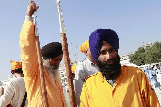 印度民众本身对黄金异常热爱,印度男子戴金饰品也相当普遍,一只手上戴三个金戒指的男士大有人在。对于印度人来说,黄金是一种身份的象征。图为印度锡克教教徒。