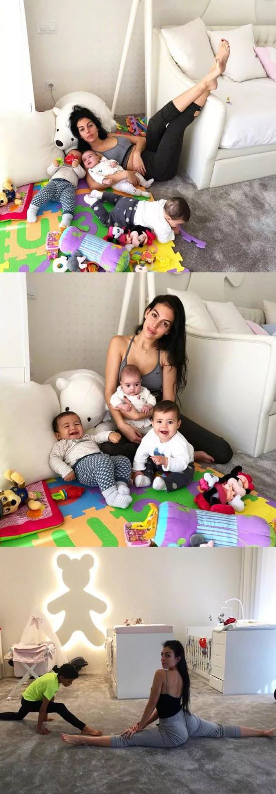 乔治娜还有一点让人佩服的是,虽然她努力工作,但也没有忽略家庭,对C罗的孩子们很是上心。