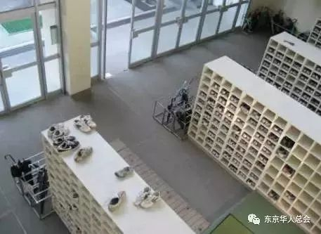 所以,我们常看到在日本学校的一进门处有一排排这样的鞋架。体育课也要换成统一的运动鞋,鞋面用颜色区分年级,也会用马克笔写上名字跟班级!