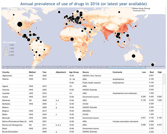 2000年至2015年,全球直接因吸毒导致的死亡增加了60%。2000年,50岁以上的人占死亡人数的27%,但2015年上升到39%。报告同时发现,大多数吸毒者是男性,但女性有特定的吸毒方式。虽然妇女通常比男子更晚开始使用药物,但一旦开始使用药物,妇女使用酒精、大麻、可卡因和阿片的速度往往比男子更快,并更加迅速地发展成吸毒病症。