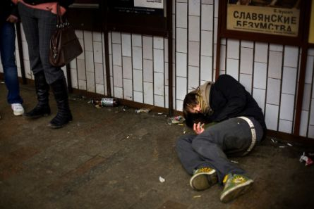 俄罗斯人爱喝酒世界闻名,不就是多喝了两瓶么?没事,马路边睡一觉接着喝!