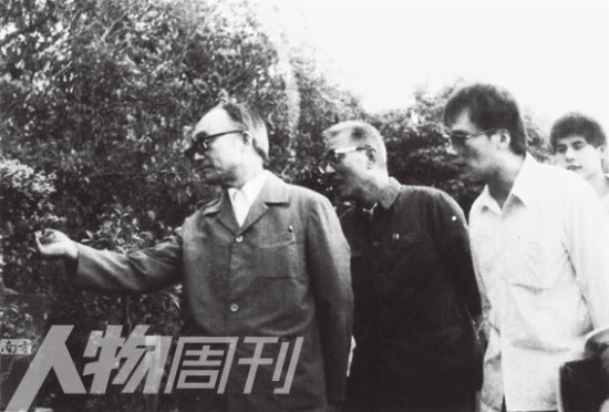 王岐山(右二)、王小强(右一)陪同杜润生到农村调查