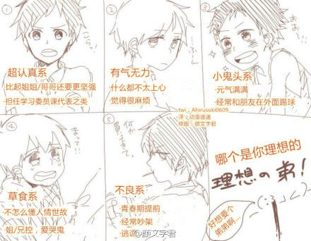 哪个是你理想的弟弟的类型?好想要个弟弟啊…_(:3ゝ∠)_(via. 颜文字君)