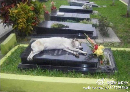 一个真实的故事,一只忠诚的狗。美国福罗里达州,狗狗capitan在主人2006年丧礼时失踪,家人近期扫墓发现它居然睡在墓碑上。据管理人员说,它7年来每天早上6点来到主人的墓碑前,安静的躺在主人的墓碑上休息。