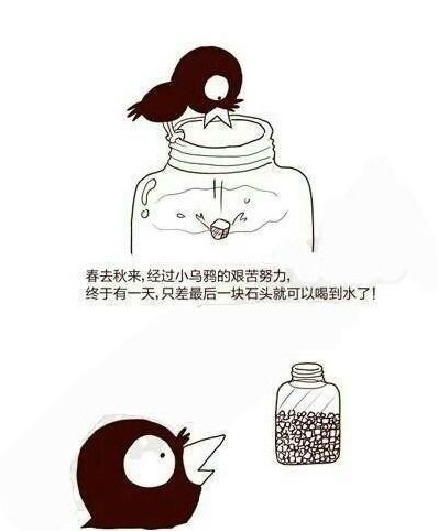 最近很火的一则漫画《新版乌鸦喝水》,看完让人沉思:很多时候,我们在追求的路上常常忘了自己做这些是为了什么,而是一味傻傻地按照既定的框架埋头苦干,回过头,才发现自己是干了件多么徒劳的事。