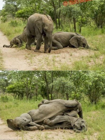 “宿醉”的大象。最近有摄影师在南非公园拍摄到一群“喝醉”的大象。这群大象贪吃了太多发酵的非洲酒树果,结果不胜酒力“醉了”,一个个站都站不稳。。。发现挣扎无果后,只得放弃,直接就地倒下就睡过去了。