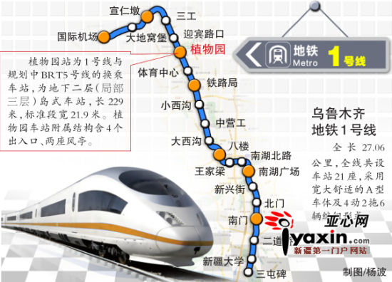 亚心网讯(记者 索子鸷)乌鲁木齐地铁1号线沿线站台的施工正如火如荼地进行。昨日,位于北京路的地铁植物园站开始建设施工。
