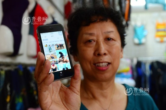 8月8日,青岛海边,“脸基尼”大妈重出江湖。中新网图片