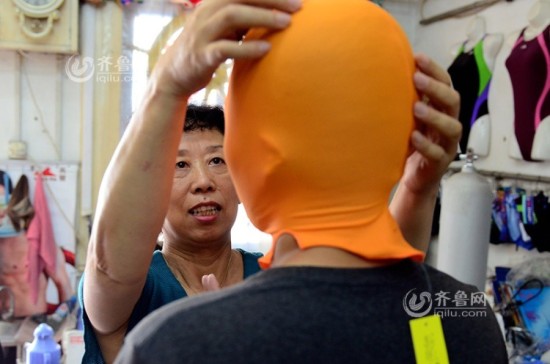 青岛大妈发明“脸基尼”远销海外 灵感来自潜水帽