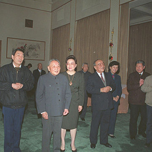 1991 年 2 月 6 日,朱镕基陪同邓小平在上海考察。前排左二为邓小平夫人卓琳,前排右二为邓小平女儿邓榕。