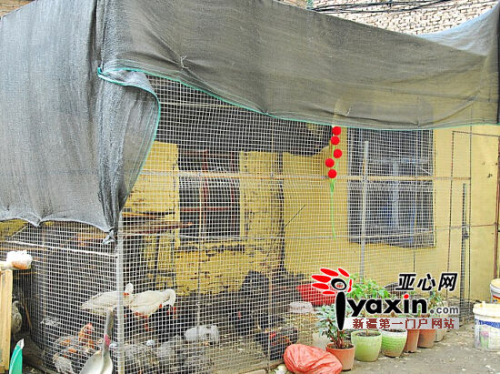 乌鲁木齐市迎宾丽舍小区一住户饲养的鸡鸭。亚心网实习生 郝晶 记者张万德 摄