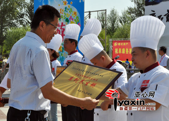 昌吉州党委常委、宣传部长索跃为阜康招牌菜店家授牌。亚心网记者 邓莉 摄