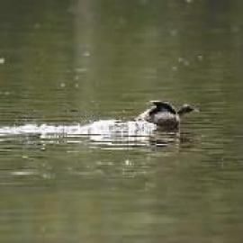 体长25~29厘米,翼展40~45厘米,体重100~200克,寿命13年。枕部具黑褐色羽冠;成鸟上颈部具黑褐色杂棕色的皱领;上体黑褐,下体白色。善于游泳和潜水,通常白天活动觅食,常潜水取食,以水生昆虫及其幼虫、鱼、虾等为食。繁殖期在沼泽、池塘、湖泊中丛生的芦苇、灯心草、香蒲等地营巢,每窝产卵4~7枚,卵形钝圆,污白色,雌雄轮流孵卵。