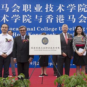 香港赛马会主席施文信先生及行政总裁应家柏先生联同雅职院党委书记张大凯先生及雅职院院长石静女士主持雅安香港马会职业技术学院的揭牌仪式