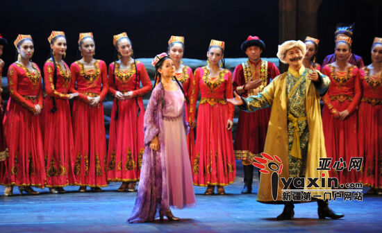 亚心网讯(记者段小利)“阿拉木汗什么样?身段不肥也不瘦……阿拉木汗住在哪里?吐鲁番西三百六……”西部歌王王洛宾改编的新疆民歌《阿拉木汗》脍炙人口。9月2日晚,大型原创音乐剧《阿拉木汗传说》在新疆人民剧场首演(下图),51名演员演绎古老爱情悲歌。