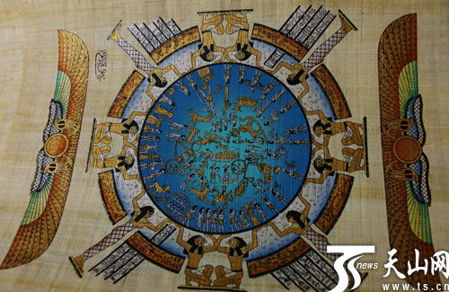 埃及场馆悬挂的纸莎草纸画。