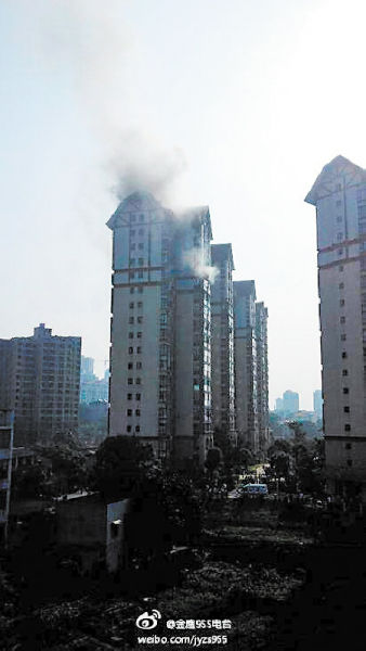 昨日,长沙向日葵小区三期8栋着火,很远的地方就能看到浓烟。 网友供图本报讯(记者 李姝阳)昨日清晨,长沙河西高信·向日葵小区三期8栋1单元电梯井发生火灾,2至18层顶楼的楼梯窗户都冒出滚滚浓烟。15楼两户居民共6人被困电梯,生命安全面临严重威胁。幸好消防官兵及时赶到,将6人救下,并成功疏散了楼内80多名居民。