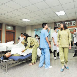 据介绍,7日18时至22时,宁东环保局连续对厂区周围空气中的氨及硫化氢等气体情况开展了3次环境应急监测,最后一次监测未检出氨气和硫化氢,周边环境空气质量恢复正常。图为中毒人员在医院接受治疗。新华社发