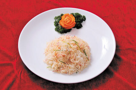 许菊云炒出的发丝牛百叶。余志雄 摄【推荐理由】发丝牛百叶一直是经典湘菜的代表之一,其中又以百年湘菜老店玉楼东最具知名度。首期“长沙味道”栏目特别邀请中国烹饪大师、湘菜大师,长沙百年老店玉楼东常务副总经理许菊云亲自掌勺,为晚报读者演示这道菜的做法。许大师炒出的发丝牛百叶,色泽洁白,香滑脆嫩,酸辣适合,口感很好,曾在第三届全国烹饪技术比赛中获金牌奖,而且适合在家制作。