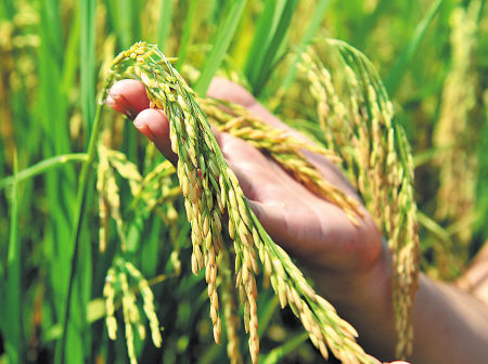 抚摸着刚刚成熟的竹稻,彭湘江满怀欣喜,而在一般人的眼里,竹稻看上去和普通稻子无异。邹麟 摄本报讯(记者 颜开云)昨日上午,浏阳市葛家乡大源村的一片稻田中,收割机正在收割一种叫做“竹稻”的新品种,而在一般人看来,这些稻子与普通杂交水稻并无太大差异。“这种水稻是由竹子和水稻杂交而成的,稻米最高可卖到20元/斤。”从广东将竹稻引进浏阳老家的彭湘江女士告诉记者,竹稻有很多神奇之处,“竹稻米煮的饭,有竹子的清香,在夏天的高温下,三四天都不会变质。”