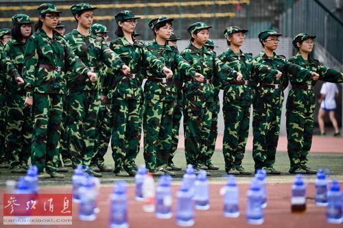 男女生是分开训练,教官比较怜香惜玉,一般都会安排女生整理内务,或者教大家叠“豆腐块”。训练时,尽量找阴凉的地方给女生训练。“对男生就要严格得多,被惩罚的男生,站在太阳底下向教官唱《征服》。”李思睿笑着说,然后就经常会听到反复有人在唱“就这样被你征服……”