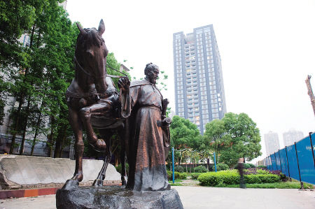 营盘路上的《辛弃疾》雕塑,就是与辛弃疾在这里建军营的历史典故有关。