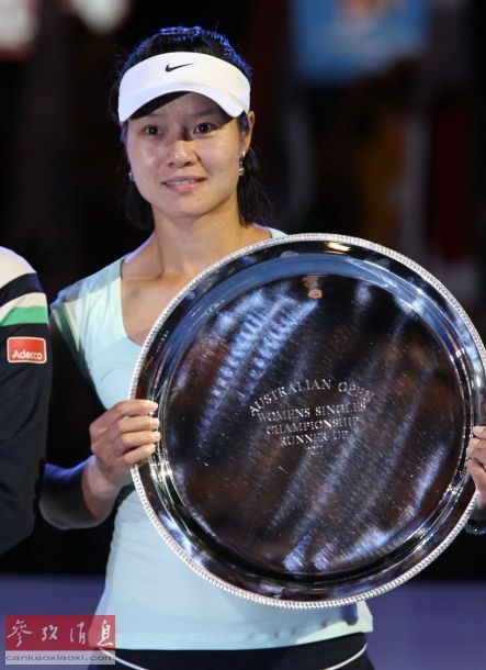 图为2011年1月29日,中国选手李娜在2011年澳大利亚网球公开赛女单颁奖仪式上展示亚军奖杯。在当时,李娜创造了亚洲女子单打选手在大满贯中的最好成绩。