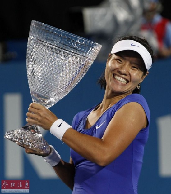 图为2011年1月14日,李娜在2011年WTA悉尼国际网球公开赛女子单打决赛颁奖仪式上与冠军奖杯合影,这是她首次获得顶级巡回赛冠军。