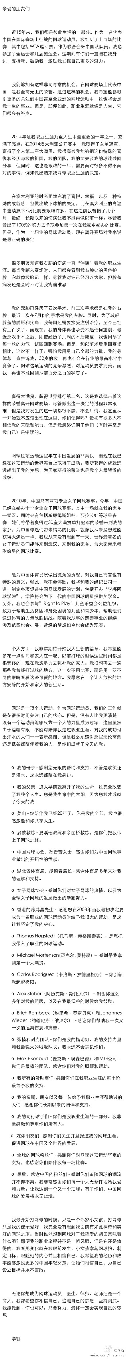 据台湾“中央社”9月19日电,中国网坛“一姐”李娜宣布退役。她透过微博发表退役告别信说,因膝伤难以恢复,将正式退役;而无法回到百分之百的状态,作为一名职业网球运动员,现在离开赛场是最正确的决定。