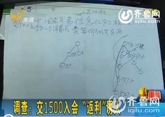 老郑给记者绘制的“会员返利图”,从图上看,会员获得的利润十分“诱人”(视频截图)